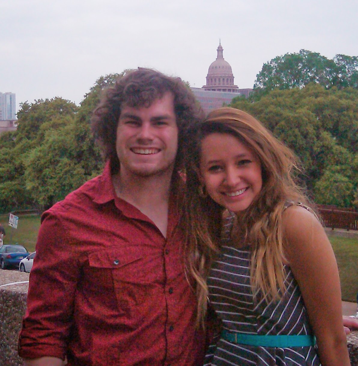 After the service, we met Lanette and Caylea outside the Center as they finished with the Kids. We discussed where to go and eat. Somehow, the topic of authentic Mexican food came up and Brenda clearly stated that she doubted Austin had anything "real" but thoroughly lived up to its Tex-Mex reputation. Brenda, being from the Border, was an expert. Ian took immediate exception. He promised that he could produce an authentic Mexican dining experience; we must only go to Taco More. So it was decided - meet at Taco More for the big test. We separated and Brenda asked me to take some pictures of the two of them. Ian wore his favorite shirt, the long sleeve reddish/maroon one, and they posed so that the State Capital was behind them. I snapped pictures that I treasure, remembering the smiles, the laughs and conversations that surrounded them.